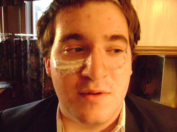Ahora mientras el látex está empezando a secar, toma un papel higiénico y rodar en una delgada línea. Cuando el látex se vuelve "pegajoso" (pegajoso al tacto) Presione el papel higiénico en el látex y deje que se seque. También puede mezclar el látex con la piel un poco a crear un borde de aspecto áspero. Personas lujo que pueden permitirse el lujo de stipple esponjas utilizaría uno aquí. Cheapos como yo utilizaría un cojín de Brillo. :)