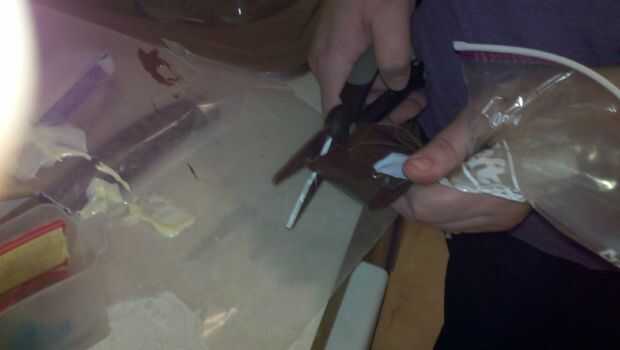 Cortar el la punta de la esquina de los holgados. No lo hacen demasiado grande o va a ser difícil controlar el flujo de chocolate.