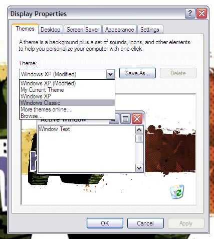 Simplemente cambiando la manera en que windows se ve drásticamente puede aumentar velocidad equipos, intente cambiar de Windows XP a Windows clásico. Haga clic derecho en el escritorio ir a propiedades, ir a temas, vaya a windows clásico, haga clic en aplicar.
