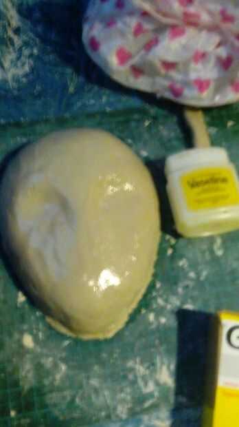 Una vez que la arcilla está seca, usar vaselina para engrasar generosamente todo el formulario. Esto hará que sea fácil de pele apagado la máscara más adelante.