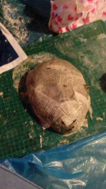 Para crear las capas de papel maché, tomar las tiras de periódico y remójelos en el pegamento líquido. Luego la capa la stips sobre el barro. Hacer esto hasta que haya capas de 8-10 y luego deje que se seque completamente.
