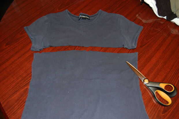 Paso 2: Cortar la parte superior de la camiseta justo debajo de las sisas.