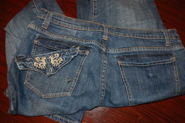 Hacer los ajustes que desea de los pantalones vaqueros. Nunca me ha gustado estas aletas del bolsillo, por lo que estoy tomando (con el destripador de la costura así).