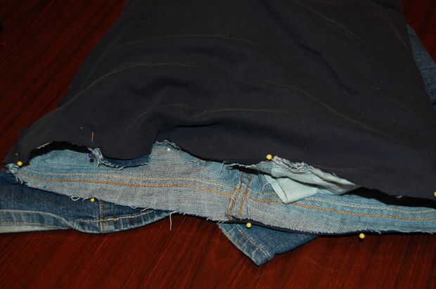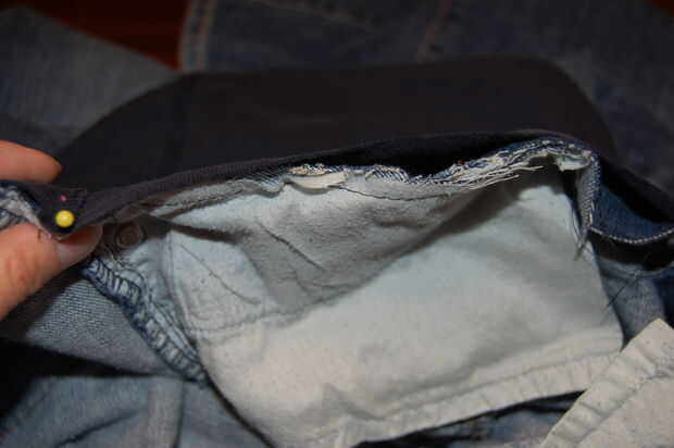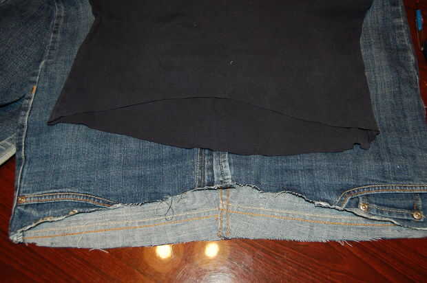 Si va a arrancar la camisa sobre el vientre, luego prender la derecha (exterior) de la camisa a la derecha (exterior) de los pantalones vaqueros. Si usted planea usar estos bajo su vientre, luego prender el lado equivocado (interior) de la camisa a la derecha (exterior) de los pantalones vaqueros.