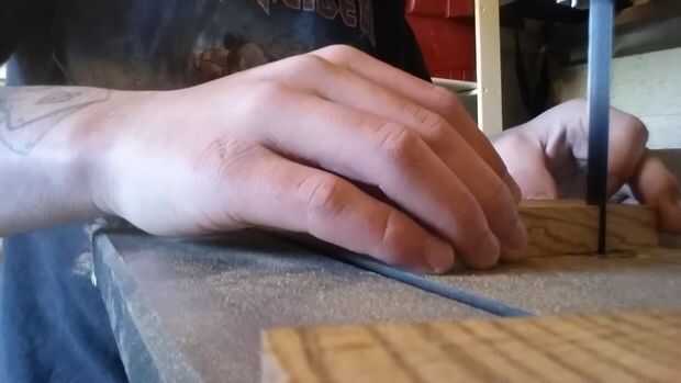 Ahora estaban más allá de la parte aburrida de la marca hasta que finalmente puede obtener adecuadas y arrancar significado, poner que eres presa del PPE ON!, hecho que, bueno, ahora podemos pasar, así que como muestra en la imagen de aquí y en el video decidí tomar este enfoque en la Sierra de banda, pero puede usar lo que tienes, Sierra de mano , Rompecabezas, incluso puede utilizar un archivo o escofina si eres lo suficientemente persistente, corté a la vuelta de mis líneas no exactamente a ellos, deja algunos residuos extra en su arena apagado más adelante.