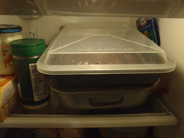 Cubrir la torta y colocar en un refrigerador para enfriar durante al menos 45 minutos.