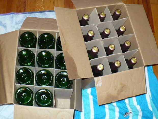 Francamente, esto es lo más fácil y más difícil de conseguir. Necesita aproximadamente 30 750 ml botellas para un lote de 5 galones de vino. Se puede comprar en cualquier tienda de homebrew seguro.