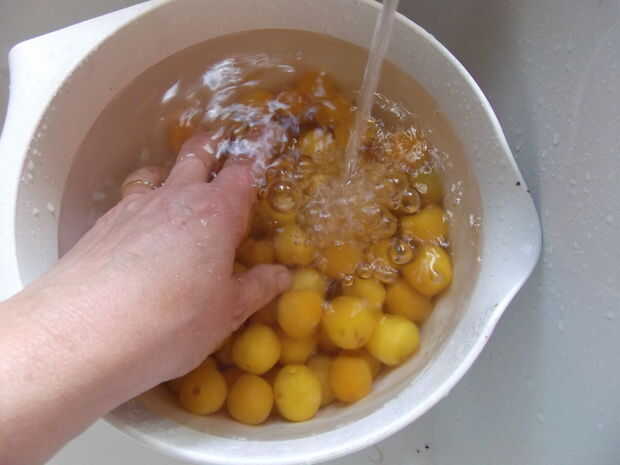 Lavar las ciruelas y hacerlo bien, así que lave las ciruelas 3 veces.