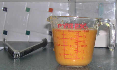 Cuando hayas añadido todo el fruto, proceso o puré para obtener la consistencia desea. Prefiero una mermelada suave proceso pulsos una docena o así. Usted necesita exactamente dos tazas de puré de frutas además de la cucharada o dos de zumo de limón. Tomó unos seis melocotones para obtener las dos tazas.
