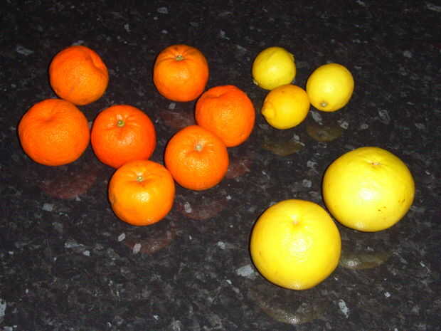 También puede agregar otros tipos de naranjas. Esta versión utiliza siete naranjas de Sevilla, tres limones y dos toronja.