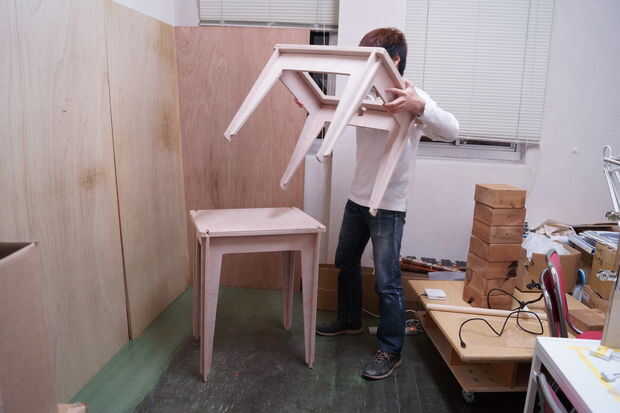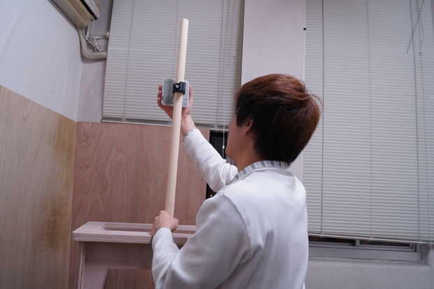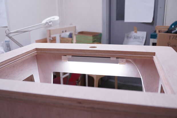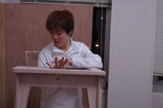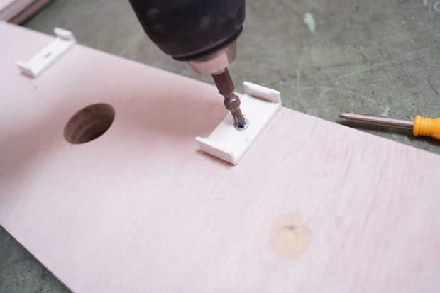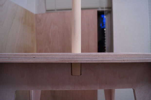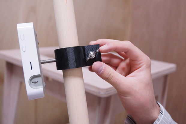 Hasta las dos de la tabla y ponen en la hoja de acrílico de la pila. Manéjelo con cuidado. Coloque el accesorio de proyector en el poste, luego el proyector.