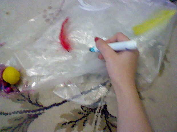paño y quitarse las plumas y crear un nuevo diseño bonito y colorido, todo nuevo.