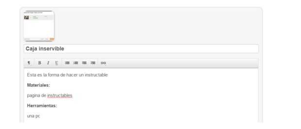 Paso 5: Agregando foto de instruducción, descripción de materiales y proyecto.