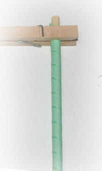 Cinta de envolver en espiga de madera (1/4" de diámetro) como se muestra en la foto, seguros extremos con pinzas de madera, cocer en el horno 250 grados durante unos 30 minutos (cada horno es diferente. Desenvuelva el extremo para ver si se hace). Clavija de madera se puede encontrar en Walmart o tiendas de arte como Joann.