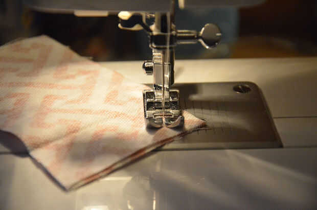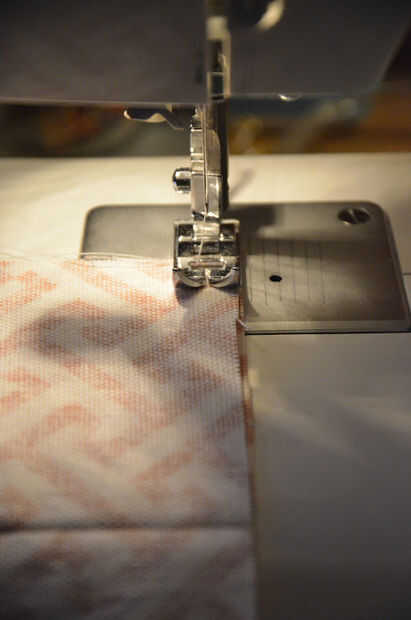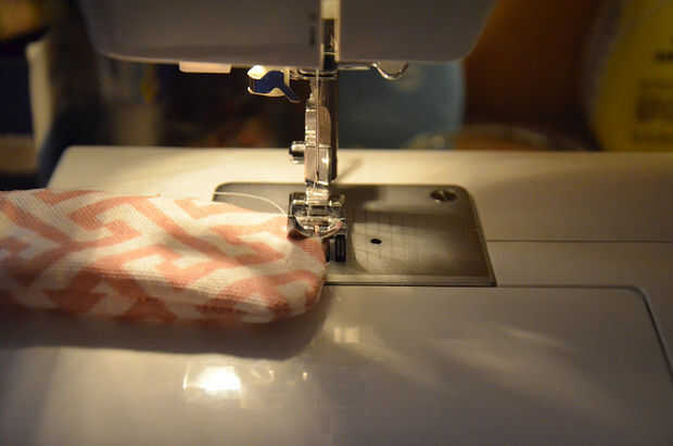 2. Comience por un extremo y coser todo el perímetro del rectángulo hasta que 2-3 pulgadas de donde empezaste. Asegúrese de dejar un agujero lo suficientemente grande como para dar vuelta a la derecha del arco hacia fuera.