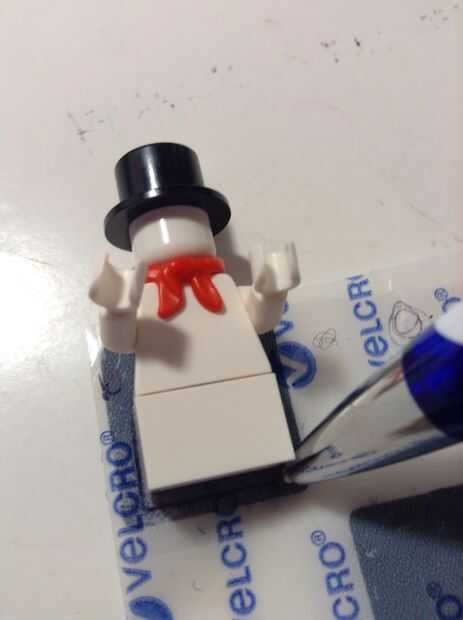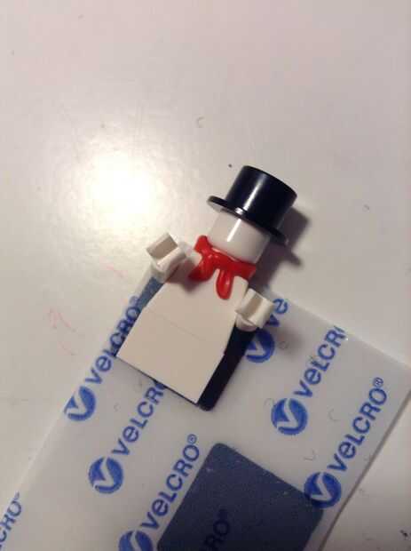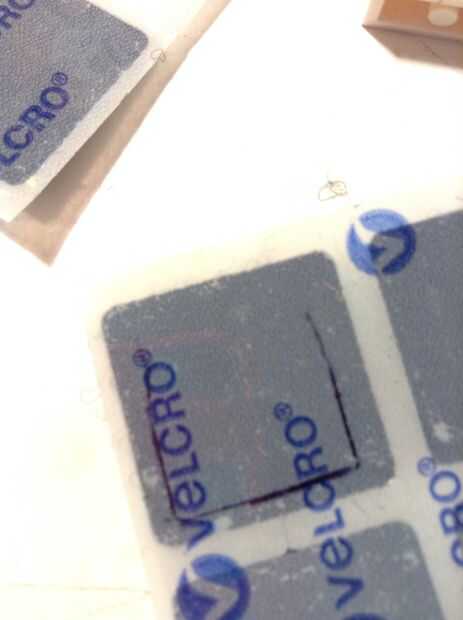 En el papel de la parte posterior del Velcro, traza una parte plana de la lego. Recorte un poco dentro de la línea. Repita con el otro trozo de Velcro.