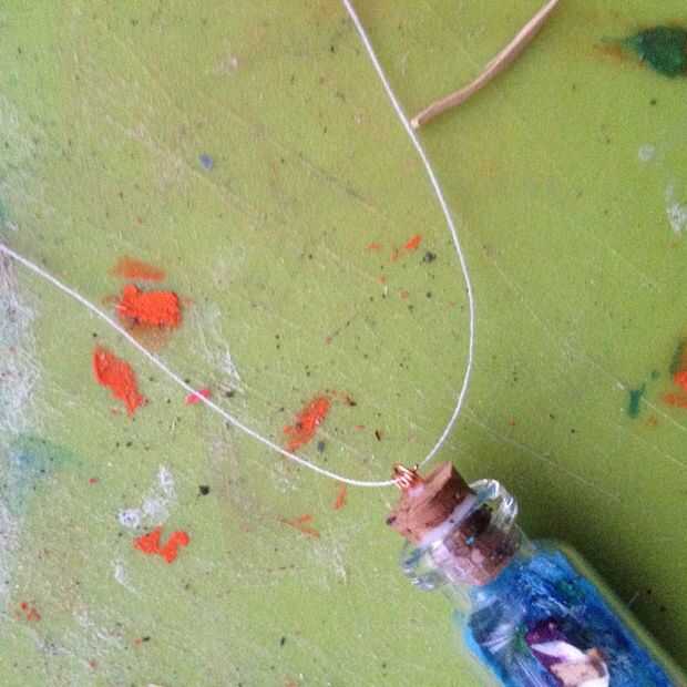 Ahora conseguir un alambre o un alfiler de cabeza. Enderece hacia fuera y añadir un lazo en el extremo. Corte a la longitud, agregar el pegamento y empuje en el corcho. Añadir a continuación una gran longitud de hilo, o cualquier otra cadena que desea utilizar. Hilo de rosca a través de, atarla con un nudo y un pegamento el corcho en el lugar. Ahora que terminaste!!