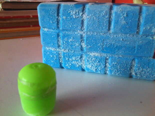 aquí hay algunas fotos de la mini nevera que hice de 1 unidad peltier, 2 disipadores de calor, 2 ventiladores pequeños, algunos corrugado plástico, sellador, un 10 por 5.5 pulgadas pedazo de tubo de cartón de 1/4 de pulgada de espesor, un trozo de vi