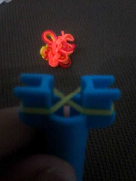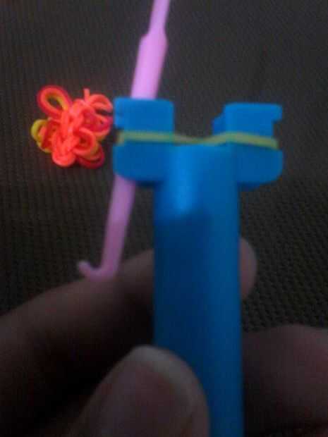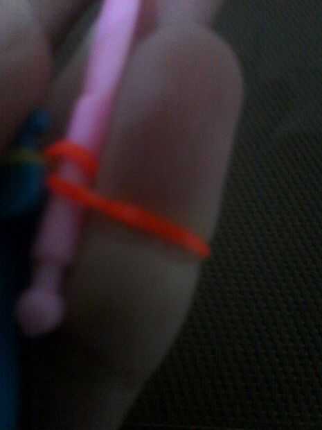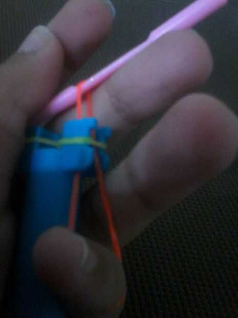 Tire del gancho y un extremo de la banda debe ser en el gancho y otra en el dedo.