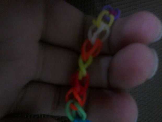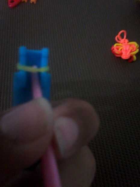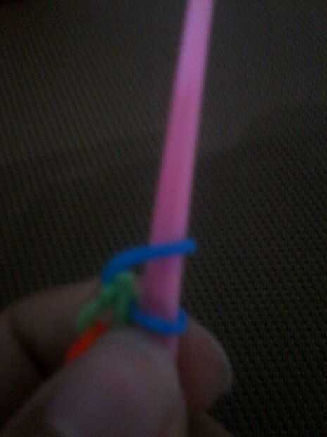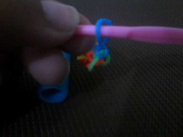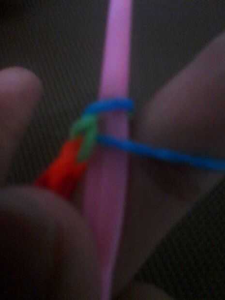 Hacia el otro lado del telar y utiliza tu gancho para quitar la banda hay que deja una banda en un lado