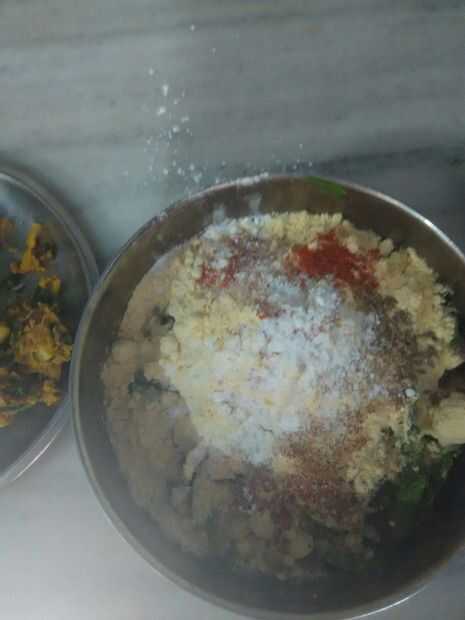 Esto es un bocado indio del estado de Maharashtra. Esta increíble, crujiente snack será un éxito instantáneo en su hogar y familia y amigos.Paso 1: Ingredientes: cosas que usted necesita4 cebollas medianas2 tazas de harina de garbanzo3 chiles verdes3