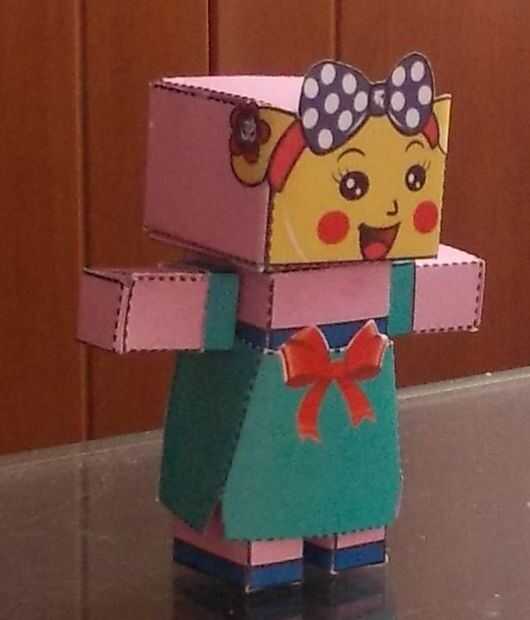 Los niños les gusta poseer algunos artículos que tienen imágenes de Miss La Sen. Usted puede ayudar a hacer el papercraft de Miss La Sen.Paso 1: Descargar patrón Miss La Sen e imprimir en el papel duro de A3.Paso 2: Cortar el patrón y dóblalo.Cortar