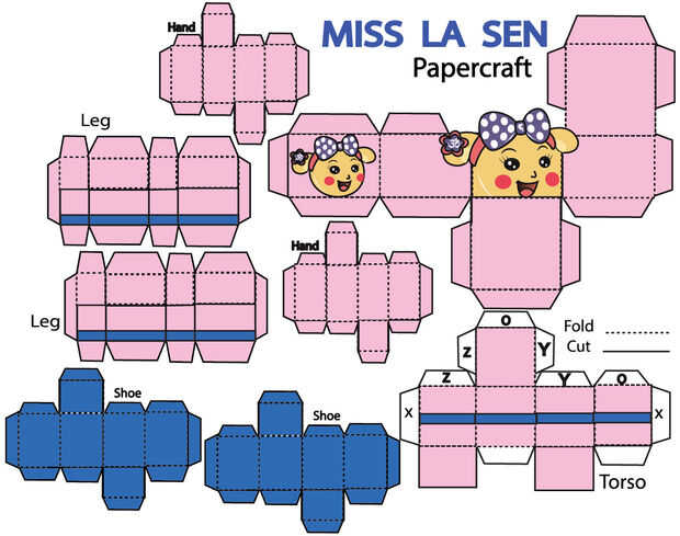 Los niños les gusta poseer algunos artículos que tienen imágenes de Miss La Sen. Usted puede ayudar a hacer el papercraft de Miss La Sen.Paso 1: Descargar patrón Miss La Sen e imprimir en el papel duro de A3.Paso 2: Cortar el patrón y dóblalo.Cortar
