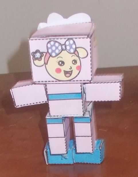 Los niños les gusta poseer algunos artículos que tienen imágenes de Miss La Sen. Usted puede ayudar a hacer el papercraft de Miss La Sen.Paso 1: Descargar patrón Miss La Sen e imprimir en el papel duro de A3.Paso 2: Cortar el patrón y dóblalo.Cortar