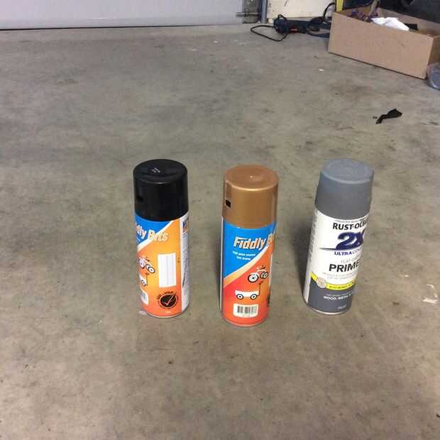 3 tipos de spray de pintura por lo menos los colores definitivamente necesitan será primer plano gris y negro, el color secundario que utilicé era de oro