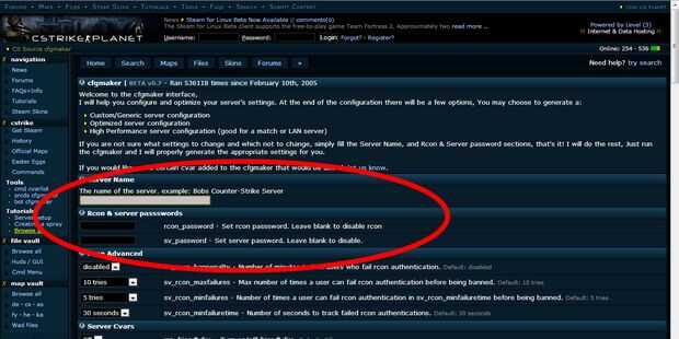 Vaya aquí para crear el código del archivo server.cfg. Sólo preocuparse por el nombre del servidor, Rcon Password y contraseña del servidor. La diferencia entre un Rcon y contraseña del servidor es que se utiliza la contraseña Rcon kick y ban los jugadores mientras que la contraseña del servidor se utiliza para evitar que personas aleatorias de unirse a tu servidor.
