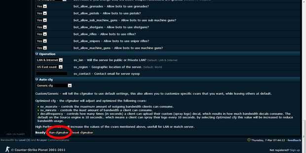 Una vez terminada la configuración el nombre del servidor y contraseñas Desplácese hasta la parte inferior de la página y haga clic en "Run cfgmaker"