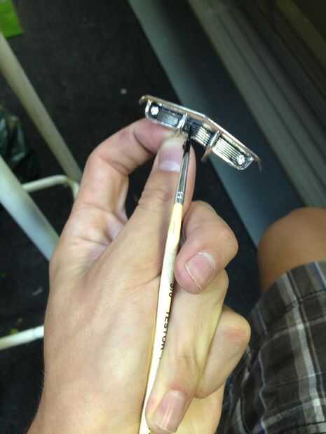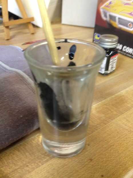 Vierta un poco de pintura en los shotglass y utilice el gotero para poner un par de gotas de pintura thinner en. ADVERTENCIA DEMASIADAS GOTAS DE DILUYENTE HARÁ A FINA. IF este pasa poner un pequeña poco más pintura pulg. mezcla bien. Sumergir el pincel en la solución y aplicar sobre el área de parrilla. No te preocupes si se pone en las partes altas de los guiones bien cuidar de esto más adelante. Ahora que la parrilla tiene pintura fina en los guiones, saque una toalla de papel y corte sobre un área de 3 x 3. Empuje suavemente semi semi duro en la parrilla. Si hay más de 1 zona doble y repetir. Asegúrese de que sólo la parte de toalla de papel con su pulgar en él toca la rejilla o los extremos pueden frotar la pintura en los guiones.