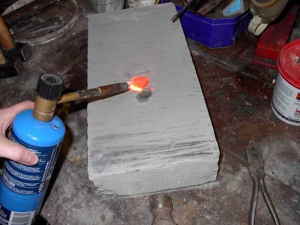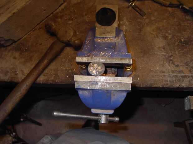 Taladro en él, (no vaya a través de todo el camino) luego calentar para arriba, ponlo superficie perforado hacia abajo en el yunque y golpear con el martillo hasta que los agujeros han pasado. Asegúrese de que la superficie perforada es siempre hacia abajo, para los mejores resultados. Una vez que han desaparecido los agujeros, es hora de pulir.