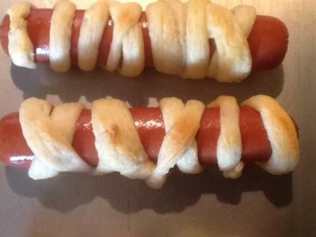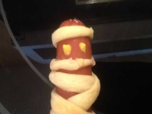 Una vez que haya cocido al horno y son de un color dorado se podría tomar la mostaza o salsa de tomate y dos puntos para los ojos en la parte superior. Mostaza es más fácil de usar porque tiene una punta más fina de squirt. Salsa de tomate puede ser un poco desordenado.