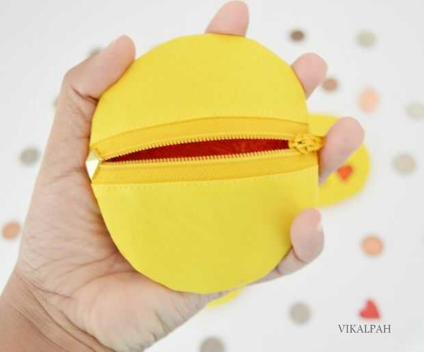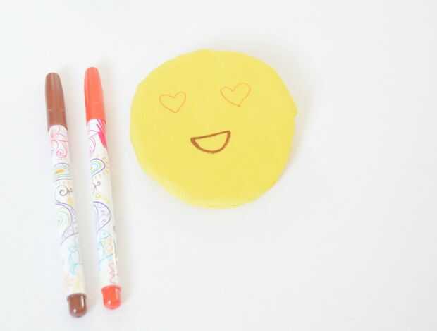 Tomar a la tela marcadores y dibujar su favorito emoji que tu amigo o cualquier persona le encantaría recibir como un regalo. He utilizado corazón ojos emoji, aquí. Tada!!! Tu monedero emoji ya está listo. Puede utilizar pegamento de tela si no tienes máquina de coser pero recomiendo coser a mano para la fijación de la cremallera. Si no desea que la cremallera, puede seguir la versión alternativa de colocar velcro o presillas.