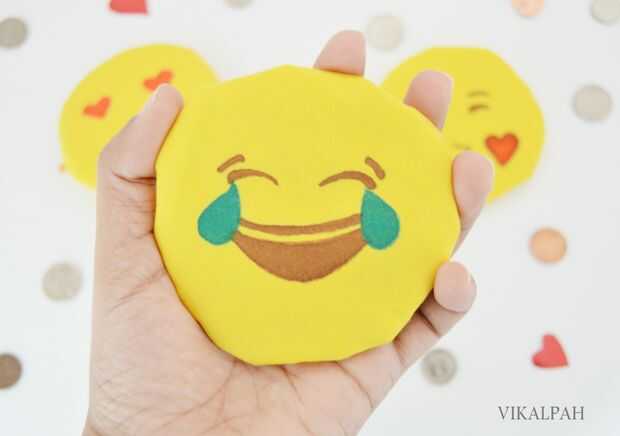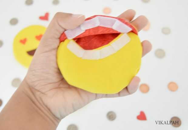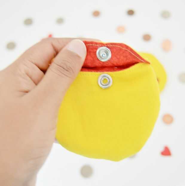 Coloque el conjunto de círculos completos con círculo amarillo hacia el lado derecho hacia arriba, luego la solapa superior con lado derecho hacia la derecha del amarillo círculo completo y luego la parte inferior con lados superposición de la parte superior. (como se muestra). Hacer una costura todo alrededor del círculo con 1/4 subsidio de costura y vuelva. Dibujar su favorito emoji con marcadores de la tela. Voila! Tu monedero Emoji está ahora listo para expresar su amor < 3.