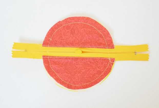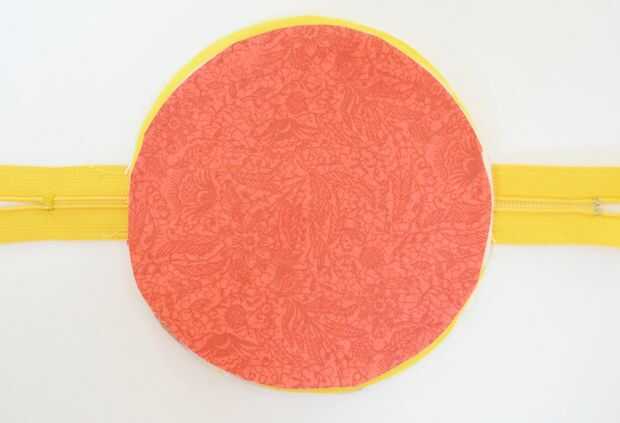 Lugar otra serie de círculos con círculos amarillos, uno frente al otro. Hacer una costura todo alrededor con 1/4 subsidio de costura.