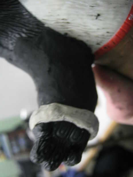 Cubierta los brazos de la panda con piezas de barro negro, luego hacer un brazalete de arcilla blanca y aplicarán overtop de barro negro cerca de la mano