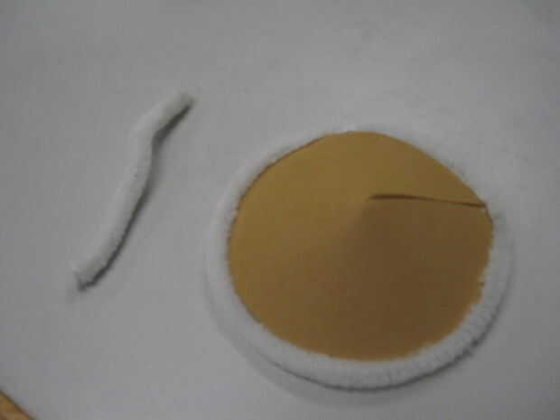 Corte una raja en la espuma y hacer un arroz forma con lo del sombrero, pegamento corte cerrado para mantener seguro y añadir un limpiapipas blanco al exterior con pegamento caliente.