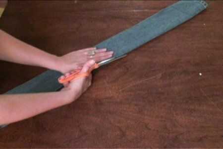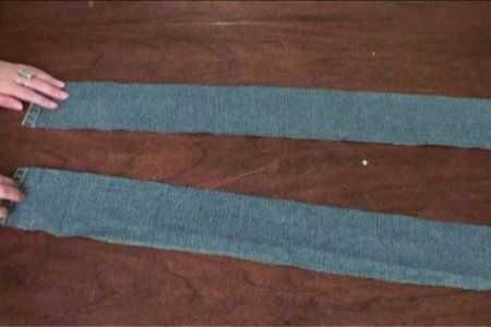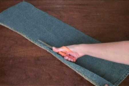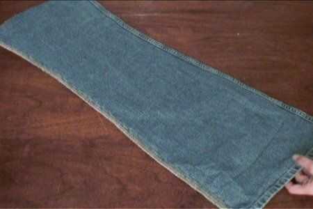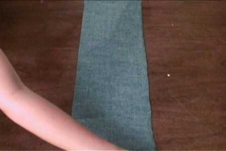 Ahora, tomar uno de esos pedazos de sobra de la pierna corta un rectángulo igual, doblar por la mitad y cortar el pliegue.