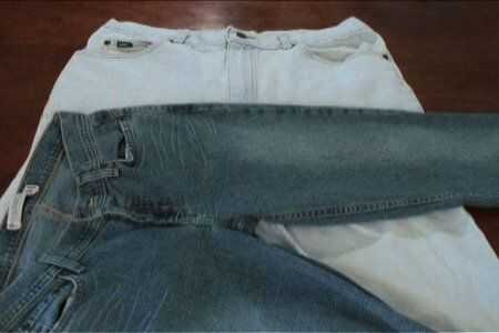 En primer lugar, salir de sus dos pares de pantalones vaqueros. Comience con el par más grande.
