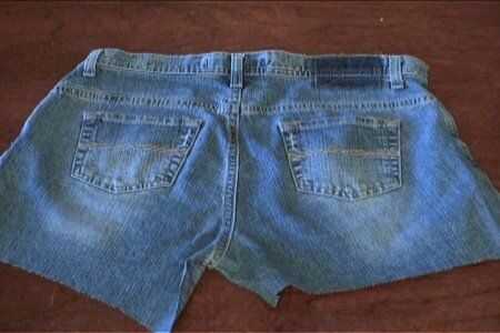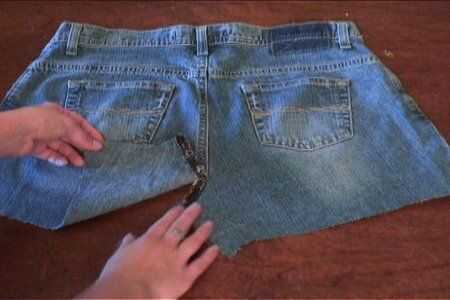 Ahora, toma el pedazo de culo y rip el área de la entrepierna hacia arriba un poco por lo que pone plana. Entonces, alfileres para el primer par.