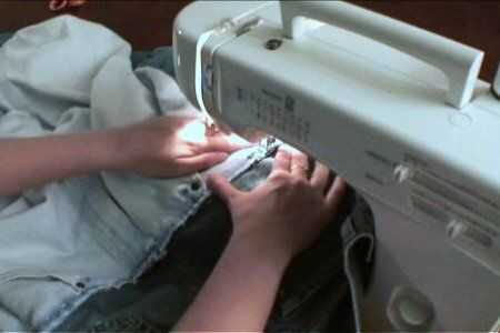 Pin otra vez, la pieza de pantalones cortos en su lugar. Coser todo lo que usted simplemente inmovilizados.