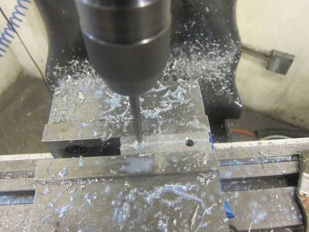 Quite la fresa y cambie a un mandril. Taladrar dos orificios y luego en diámetro con un poco más grande.