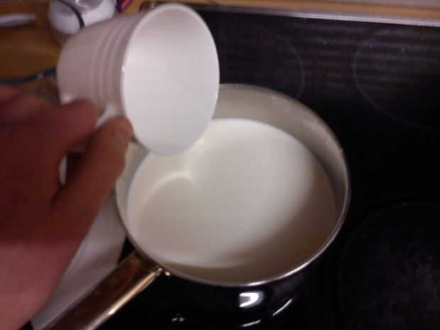 Medir un cuarto de una taza de agua embotellada (unchlorinated). Siga las instrucciones de los envases del cuajo... Mi botella de cuajo dice 'por cada litro de leche, añadir 5 gotas'