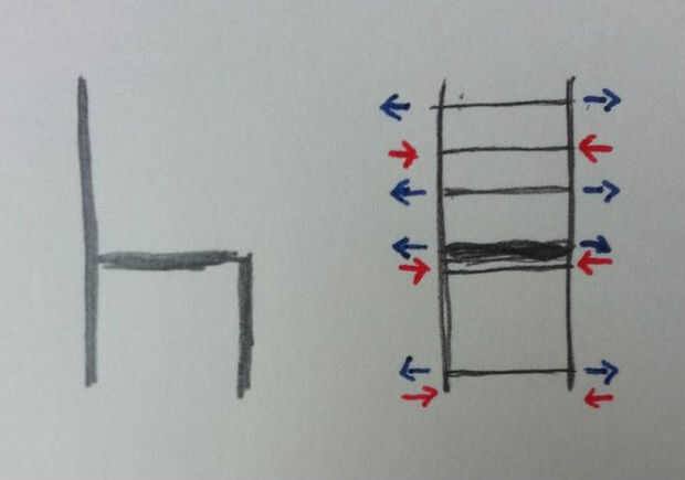Nota: es importante poner componentes en tensión cerca de los elementos en compresión porque no los sujetadores deben utilizarse en el proceso de montaje. Los componentes individuales de la silla, cuando en el orden correcto, cada uno con el otro sostenga en su lugar.