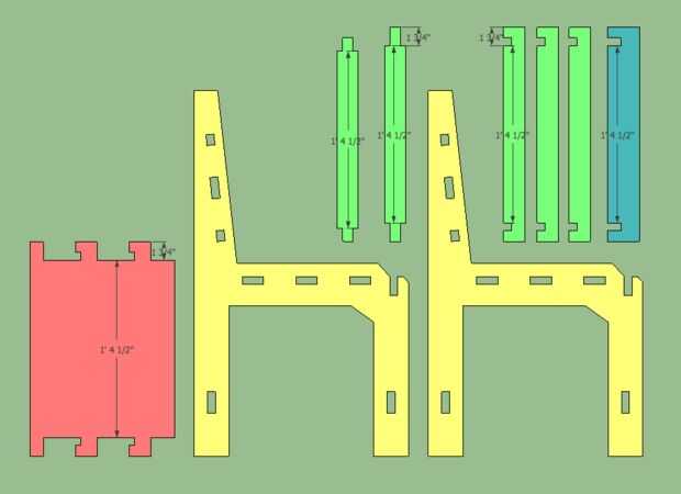 Nota: la dimensión interior es la anchura del asiento de la silla y respaldo; 1' 4 1/2" en el diagrama anterior.