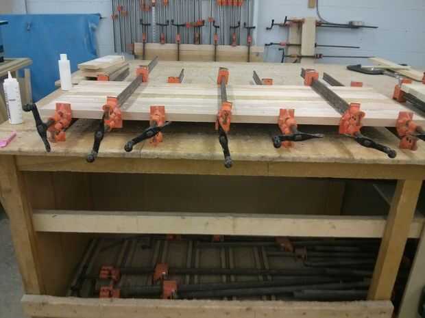 Si usas madera suave, usar a un mártir (un pedazo de madera sacrificatorio) entre las abrazaderas y el panel para que las abrazaderas no marcan.