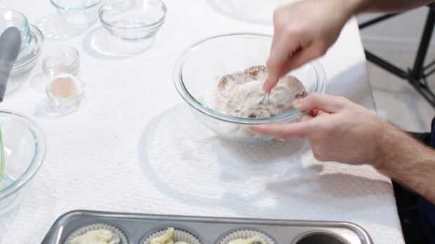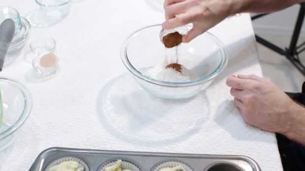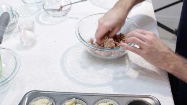 Ahora es el momento para hacer nuestro delicioso topping. De la lista de ingredientes de relleno, mezclan la harina, canela, azúcar y mantequilla. Primero empieza con una batidora de repostería o tenedor y mezclar juntos. A continuación, puede utilizar los dedos que funciona realmente bien!