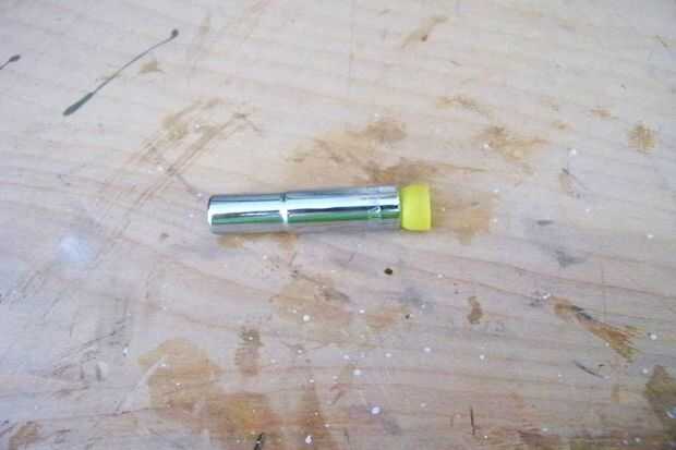 Para comenzar a tomar el auricular pieza (Foto 1) y dobla la parte que va hacia fuera de su oído. (Foto 2) Una vez hecho esto pegue la parte que es de color azul en la foto a la parte posterior de la 1/4". (Foto 3) Ahora doblar la aleta sobresale en la parte posterior de la toma. (foto 4) Ahora que usted ha hecho esta toma este chico fuera y grafitear oro.